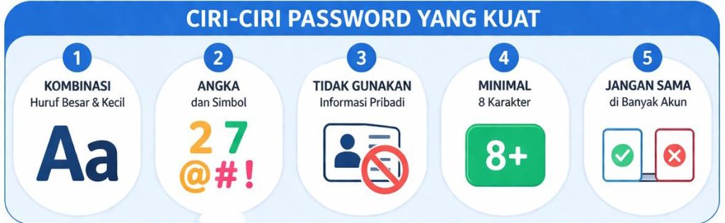 Agar keamanan lebih optimal, ada beberapa ciri password yang baik. Pertama, gunakan kombinasi huruf besar dan kecil. Kedua, tambahkan angka dan simbol unik. Ketiga, hindari penggunaan informasi pribadi.